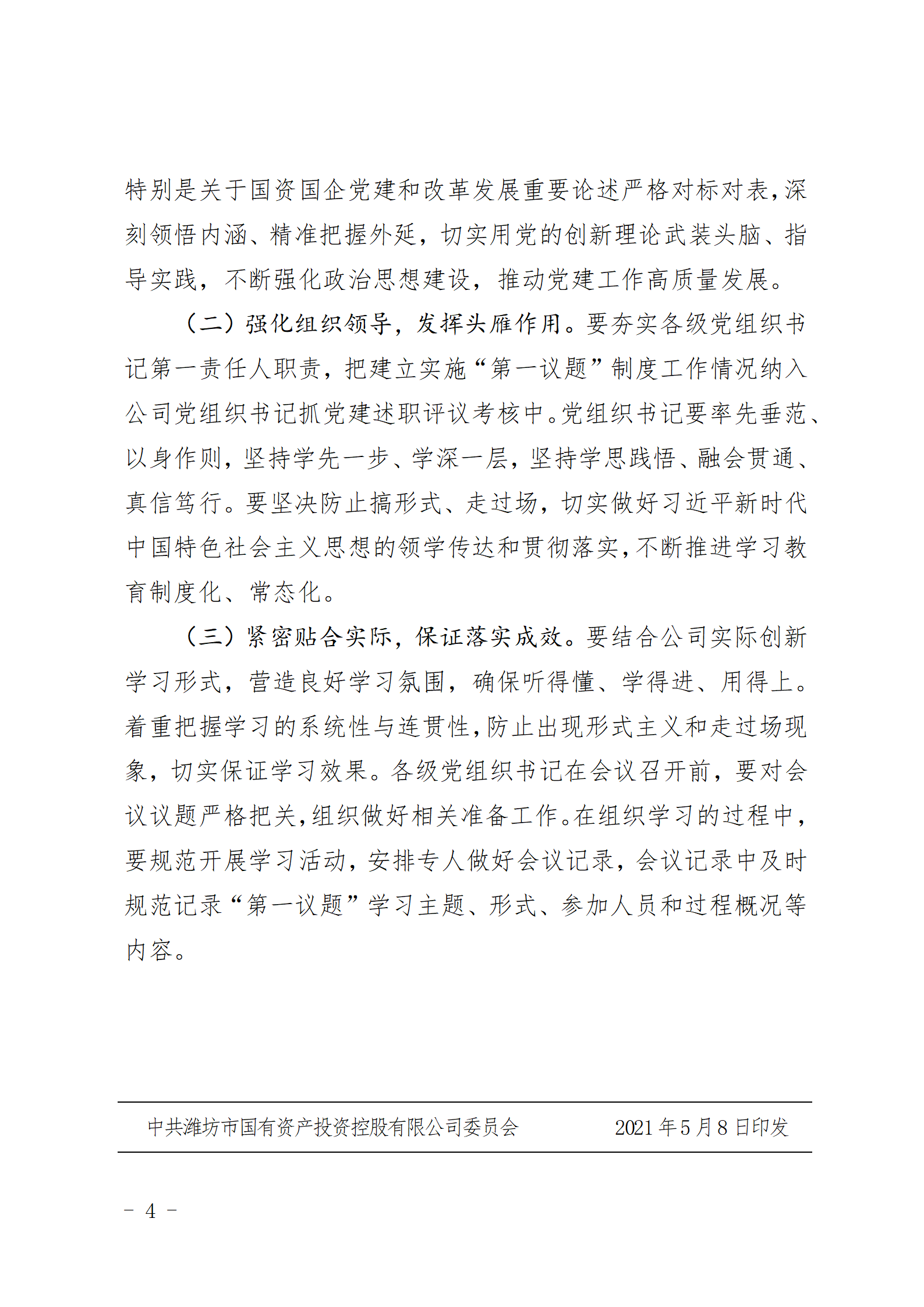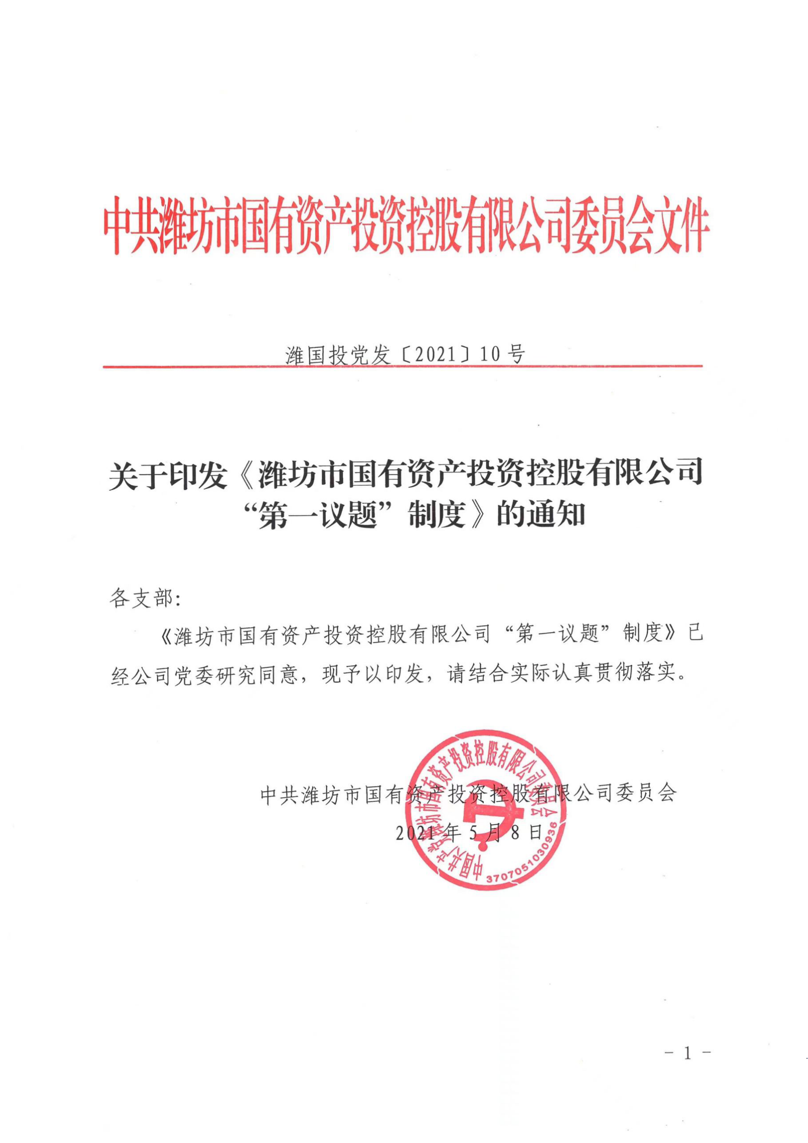 關(guān)于印發(fā)《濰坊市國(guó)有資產(chǎn)投資控股有限公司“第一議題”制定》的通知