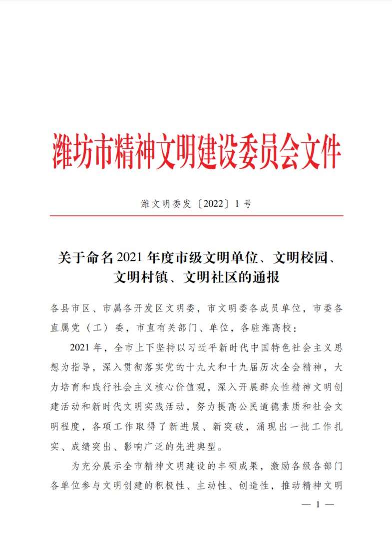 [喜訊]濰坊市國(guó)有資產(chǎn)投資控股有限公司榮獲“濰坊市市級(jí)文明單位”稱號(hào)